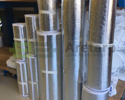 El compuesto bicapa que más utilizamos, formado por 2 capas de aluminio con burbuja intermedia, duplica la cantidad de aire que además de protección térmica, nos ofrece una protección acústica.